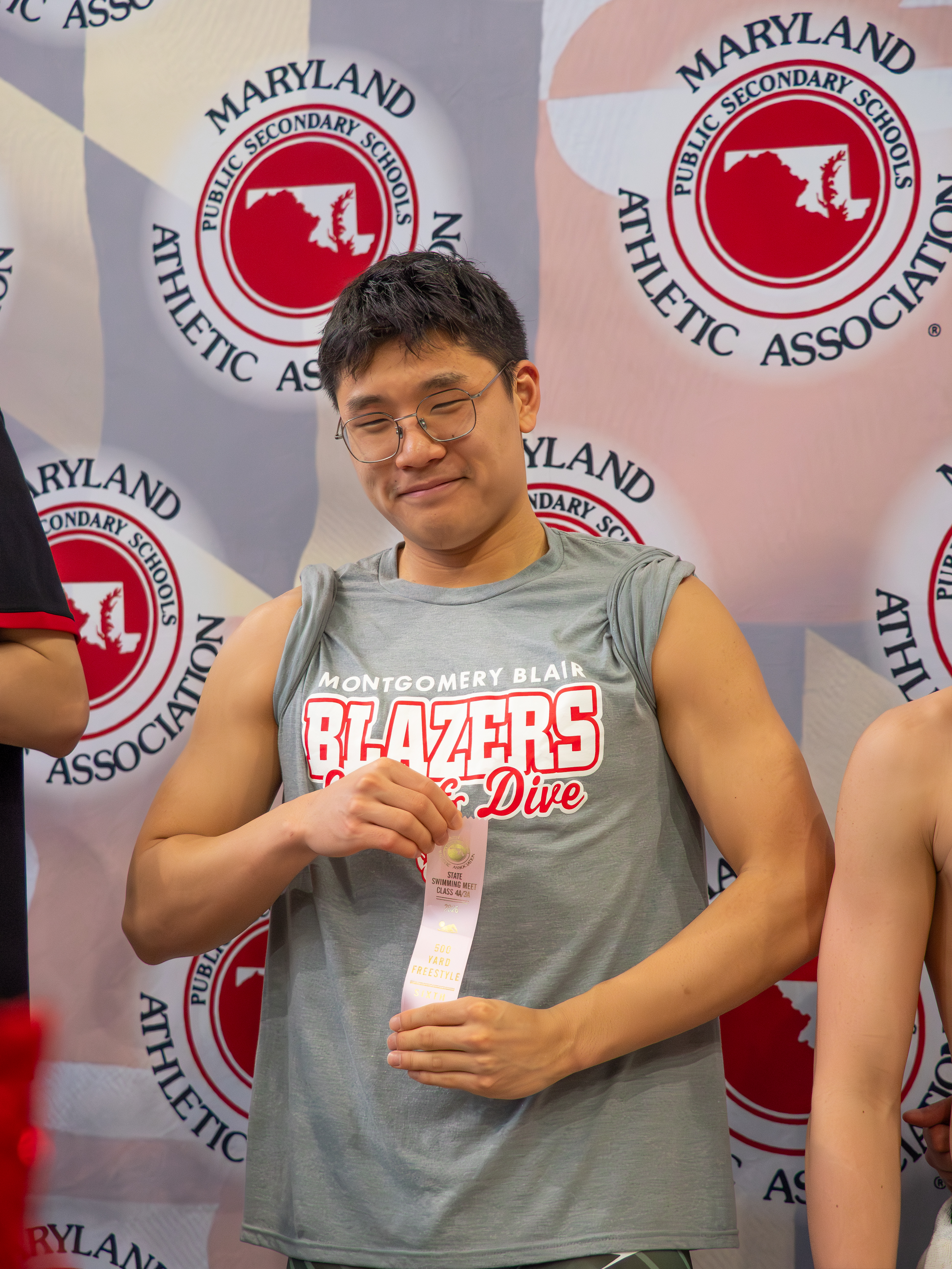 Photo: Blair swimmer celebrating his ribbon in an event