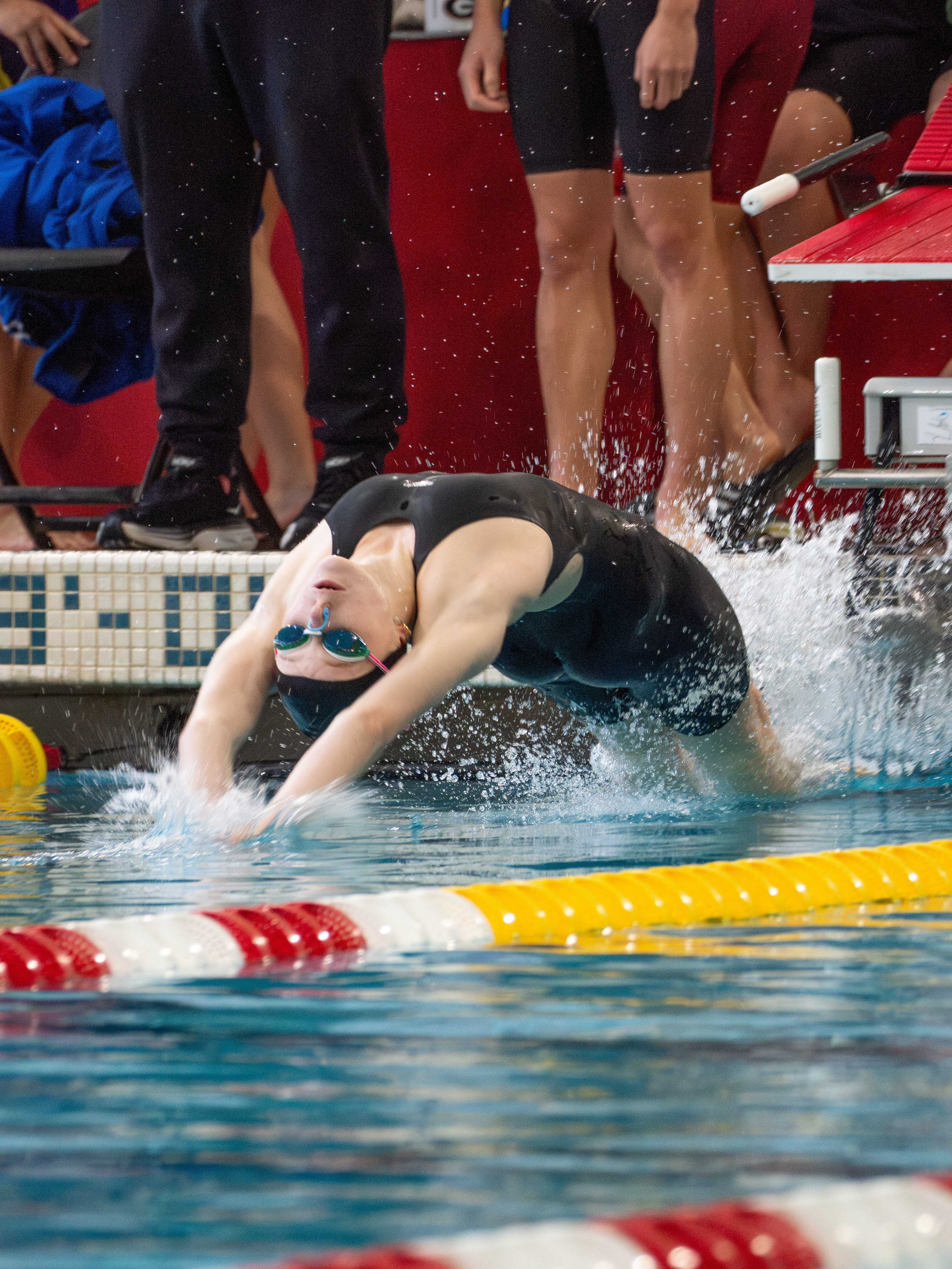 Blair swimmer launching off her backstroke start position