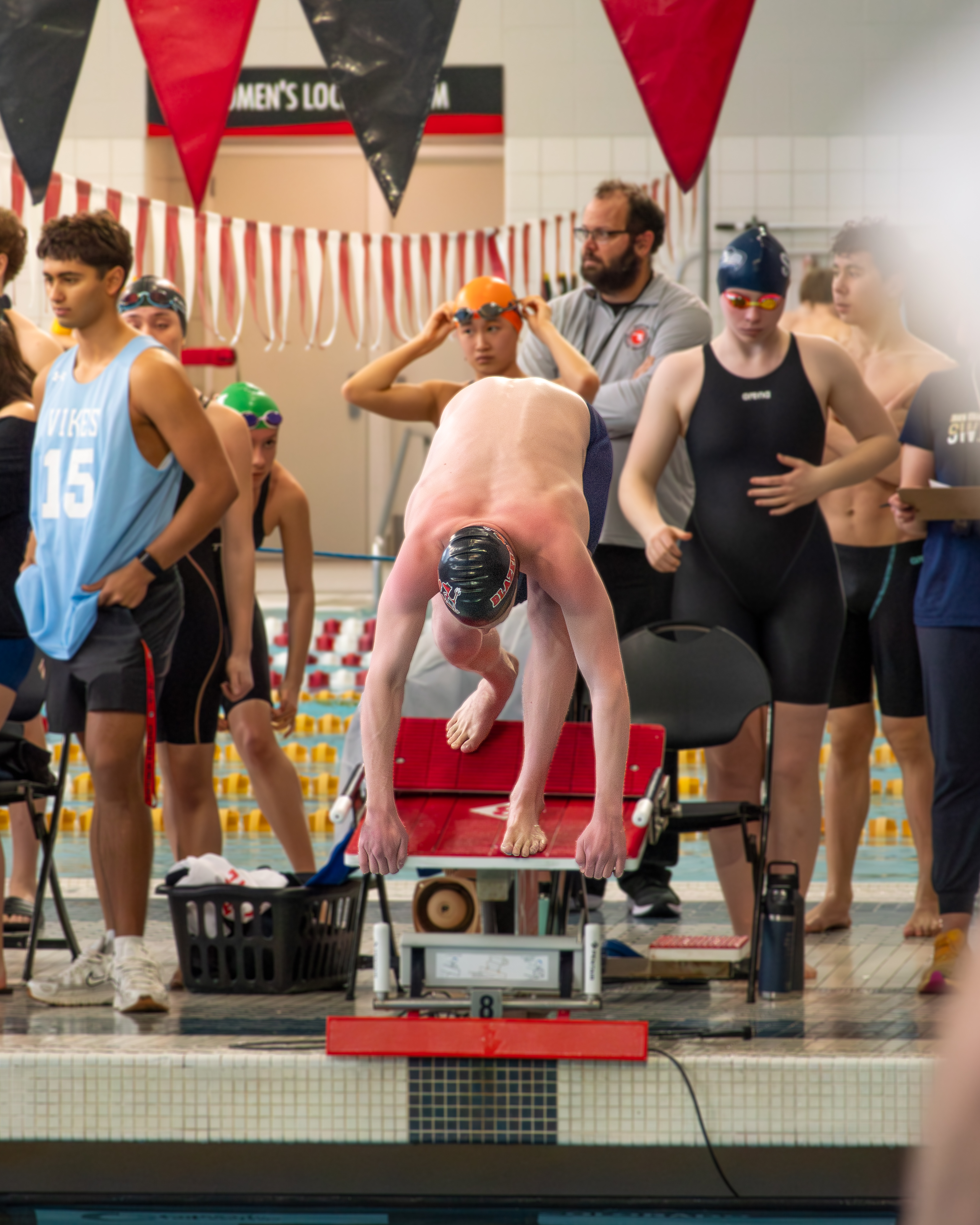 Blair swimmer on the blocks moments before the start of their event